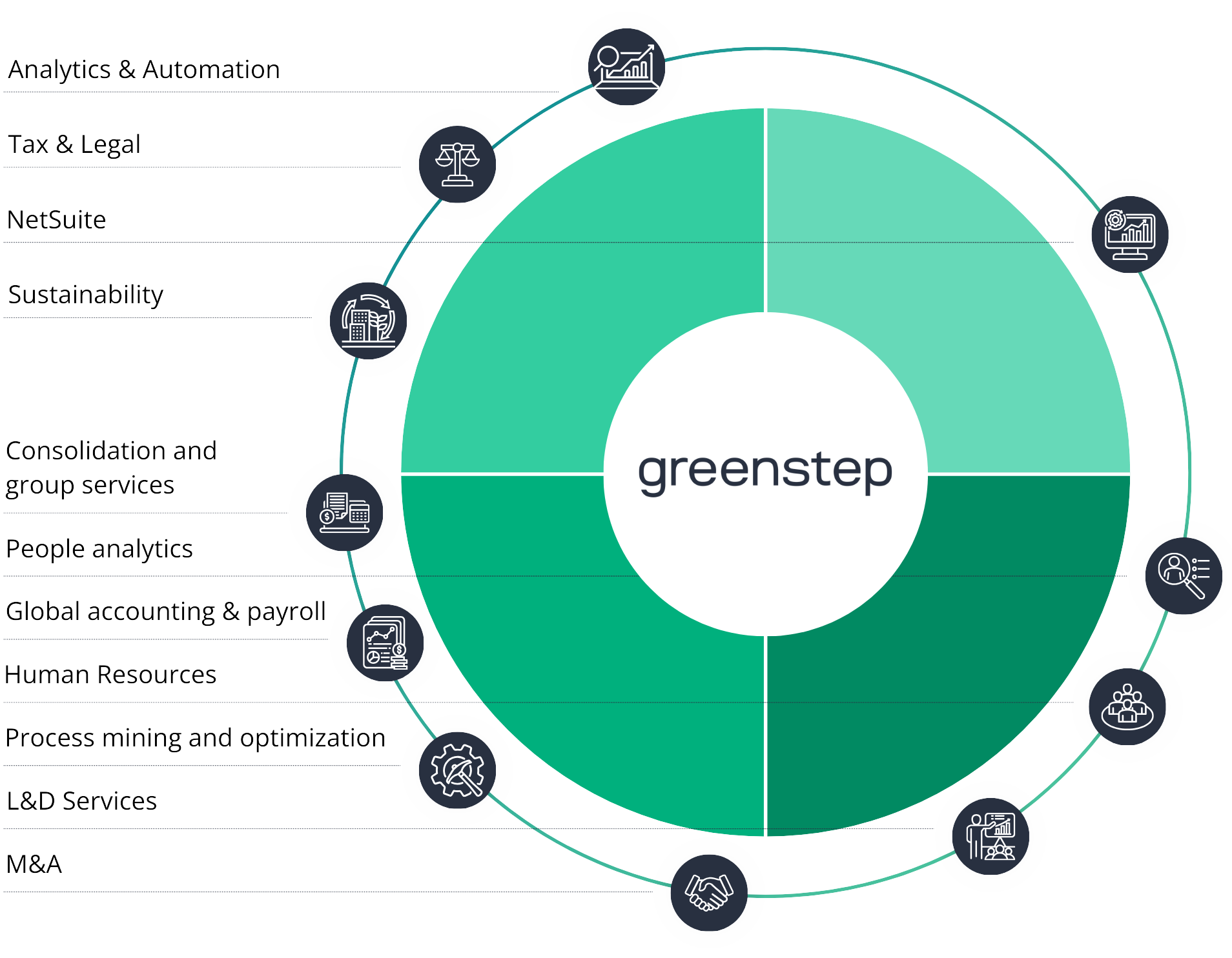 Fra et økonomisk administrasjons- og regnskapsperspektiv er et viktig strategisk valg om regnskapet håndteres lokalt i utlandet eller sentralt i Finland. Regnskapene til utenlandske selskaper kan administreres i mållandet ved hjelp av en lokal finansiell partner fra MSI Global Alliance, eller regnskapet for hele konsernet kan gjøres sentralt fra Finland ved hjelp av Greensteps «delte servicesenter». Som vår partner får du tilgang til Greensteps proaktive team av finansielle eksperter og teamene av globale eksperter fra MSI Global Network. Mens våre MSI Global-partnere tilbyr utmerket lokalkunnskap fra deres lands økonomiske forskrifter og praksis, spesialiserer teamet vårt på konsernregnskap og «det delte servicesenteret» for å sikre at den økonomiske administrasjonen alltid er så enkel som mulig for deg.